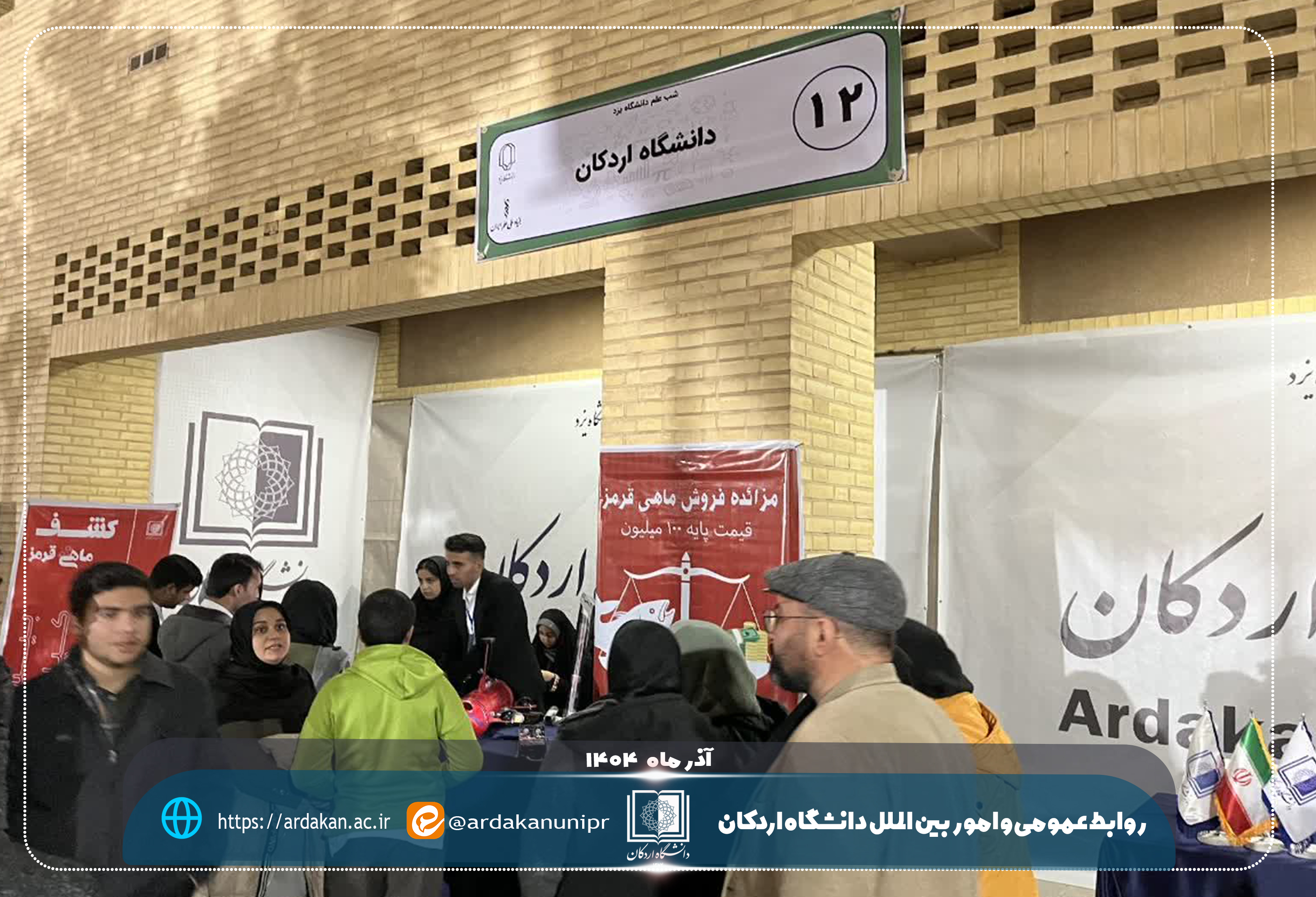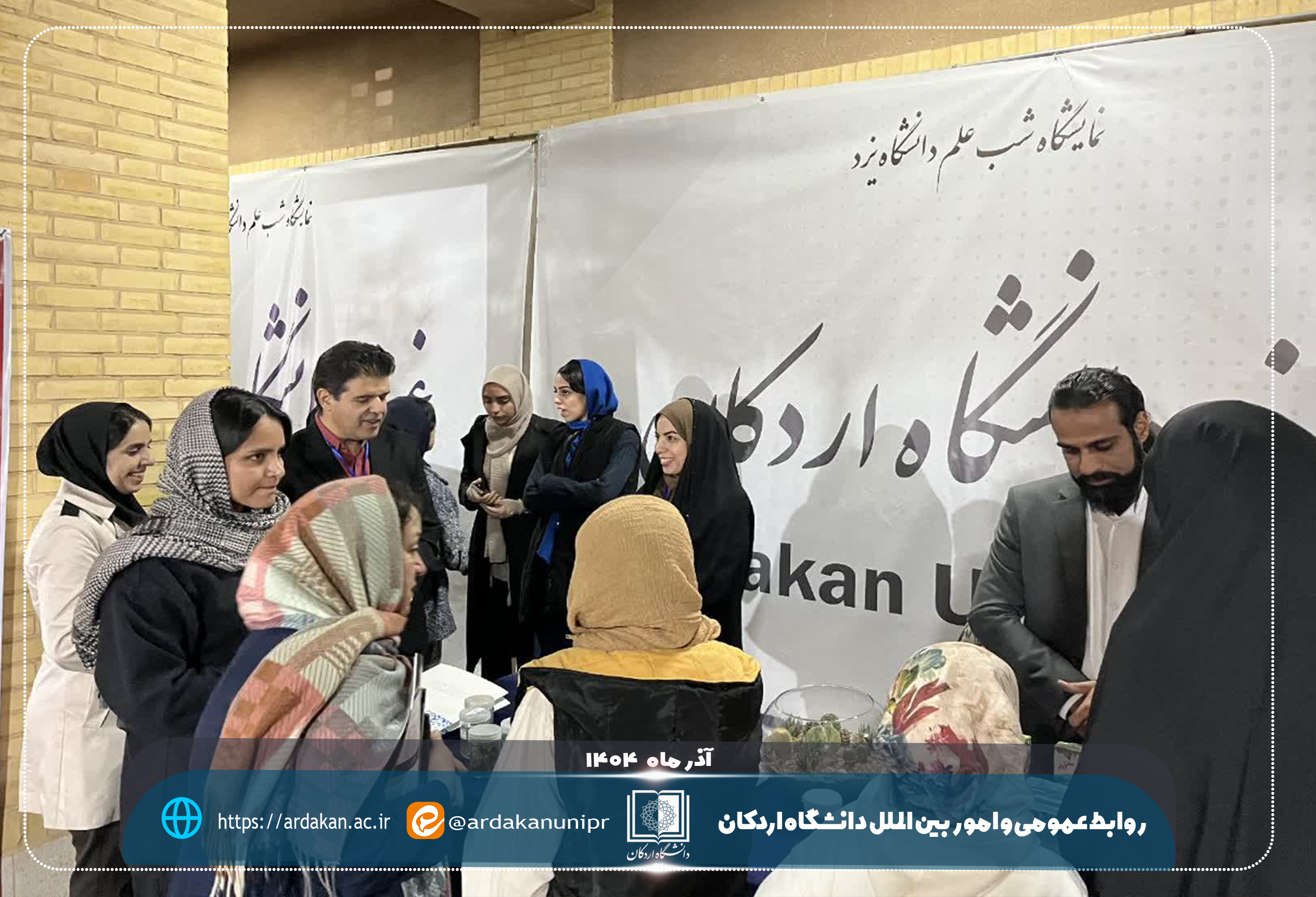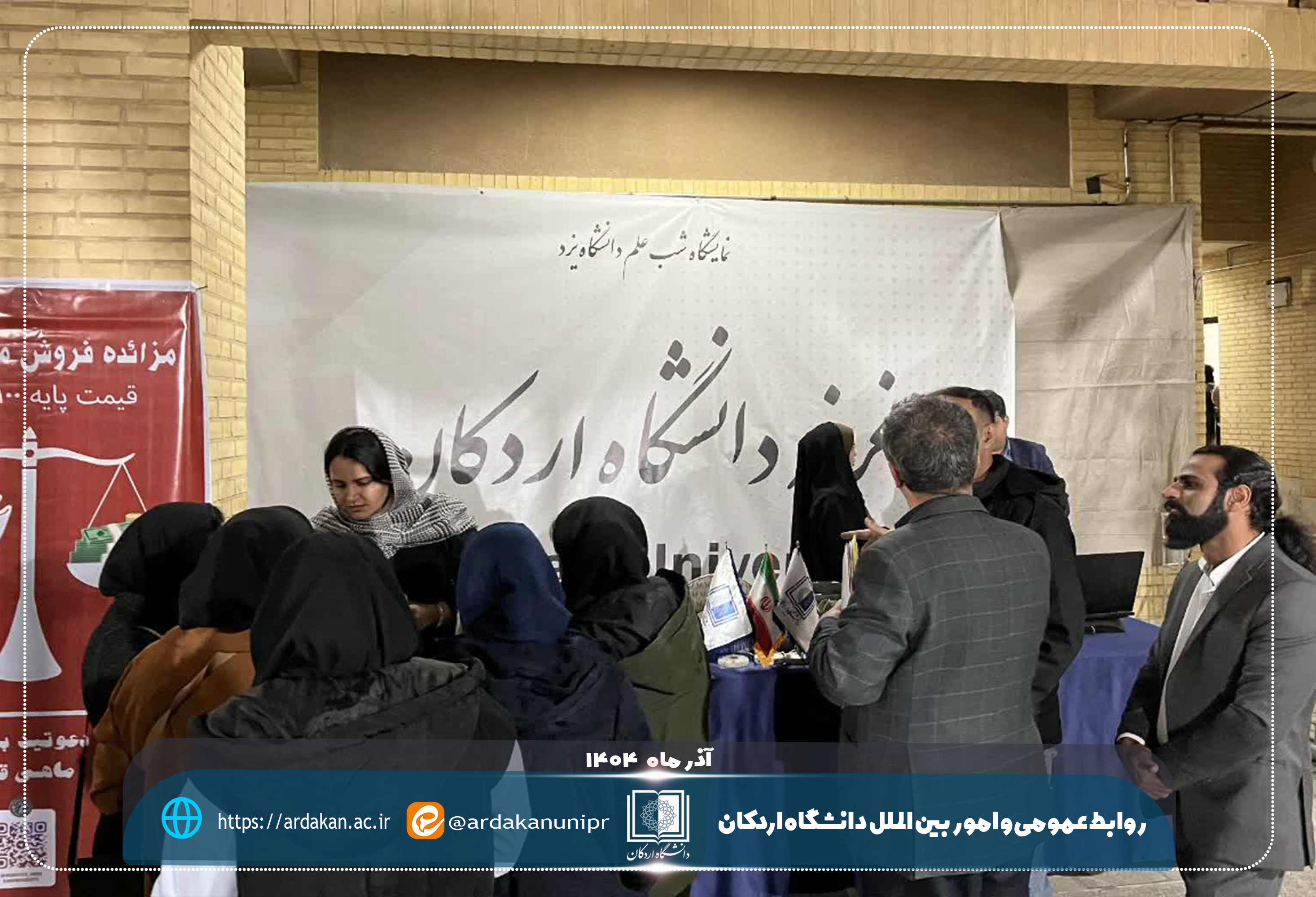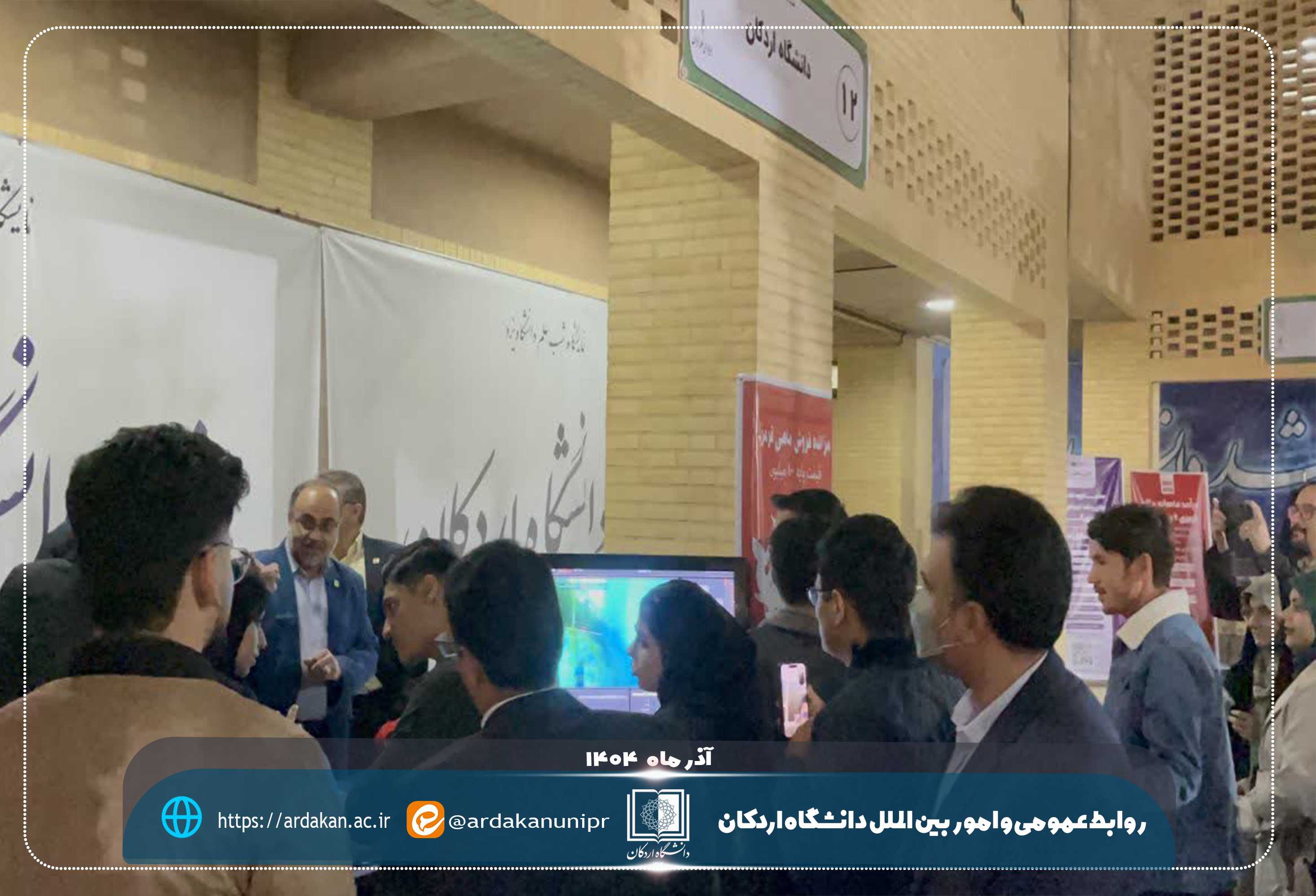 در این آیین علمی و پژوهشی که با حضور دانشگاه‌ها و مجموعه‌های علمی استان یزد برگزار شد، غرفه دانشگاه اردکان با استقبال خوب و پرشور بازدیدکنندگان روبه‌رو شد و مورد توجه اقشار مختلف جامعه قرار گرفت. بازدیدکنندگان، از نزدیک با دستاوردها، ایده‌ها و پروژه‌های اجرایی‌شده توسط دانشجویان دانشگاه اردکان آشنا شدند.